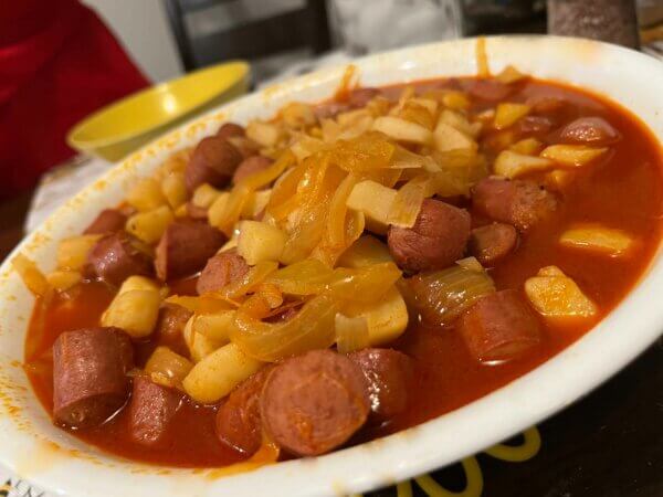 DetailsI was raised in a Hungarian/Jewish household, which means we had lots of Goulash and Paprikash at pretty much every Jewish holiday. However, one of the most comforting foods from my childhood is a simple stew made of hot dogs, potatoes and onions in a paprika-based broth. My mom called it Frankfurter Goulash, and it was a staple in my house growing up – 100% pure comfort food.